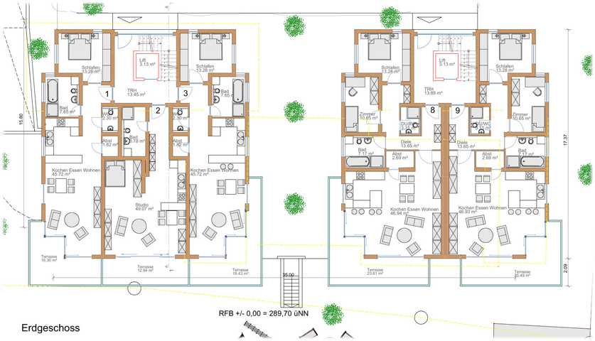 - Haus 6 Wohnungen mit Balkon oder Terrasse
