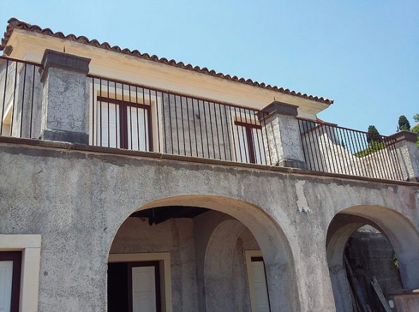atemberaubender Panoramablick auf die ionische Küste. Ein bezaubernder Ort am Fuße des Äthna, ca.300m vom Meeresspiegel und 4 km von der ionischen Küste entfernt, eingebettet inmitten zweier grüner Hügel. Einer der wenigen Plätze auf der Welt in der man im April morgens Ski fährt und 25km weiter nachmittags im ionischen Meer baden gehen kann. Das Werk befindet sich in seiner Endphase, aufgewertet durch seinen schönen Ausblick und seiner einmaligen Umgebung