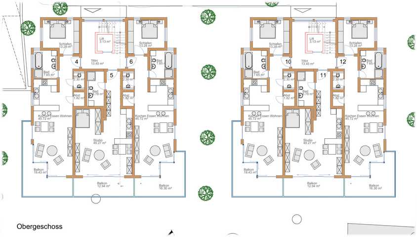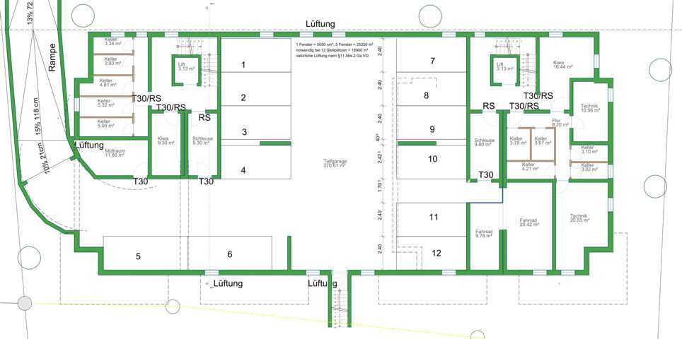 the two apartment buildings, each with six apartments, are being built in the Varnhalt district of 76534 Baden-Baden. The location offers a blend of nature and proximity to the city. Apartment sizes range from 59,09 m² to 151,09 m², a plot area of 1772 m², living space of 1128 m²,usable space of 600 m², and 12 underground parking spaces.